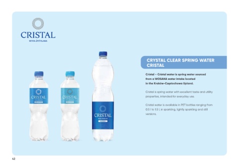 0.5 l to 1.5 l, in sparkling, lightly sparkling and still                                                                               CRISTAL – SPRING WATER 1.5 L PET