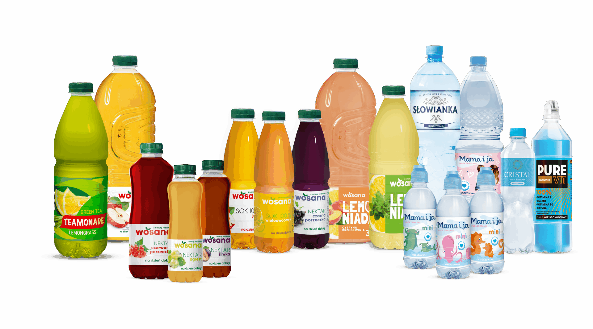 Nasza oferta obejmuje: soki w butelkach PET (w tym soki NFC), wody mineralne i źródlane, napoje gazowane i niegazowane, napoje bez konserwantów, a także napoje energetyzujące, izotoniczne oraz funkcjonalne.
